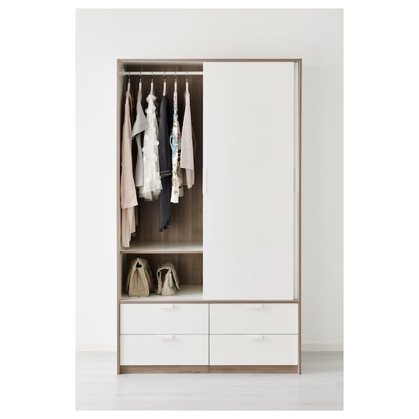 The ikea kvikne two sliding door wardrobe is an efficient wardrobe with sliding doors that allow more room for adding furniture—as the doors do not require space to open.
